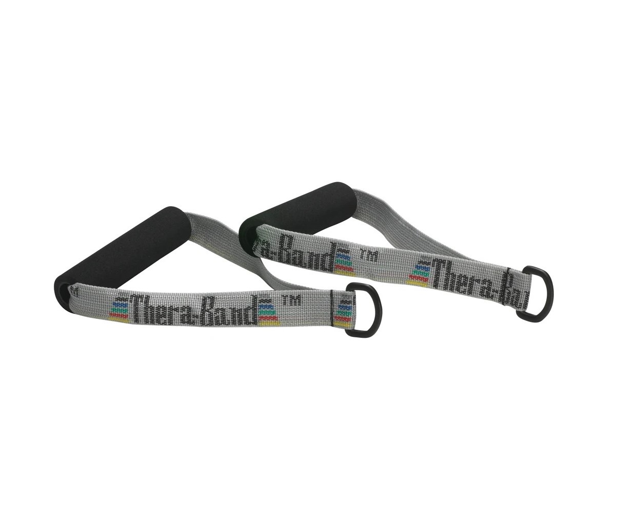 • THERABAND® Exercise Handles are soft-grip padded handles that easily connect with bands and tubes for a quick and comfortable grip.