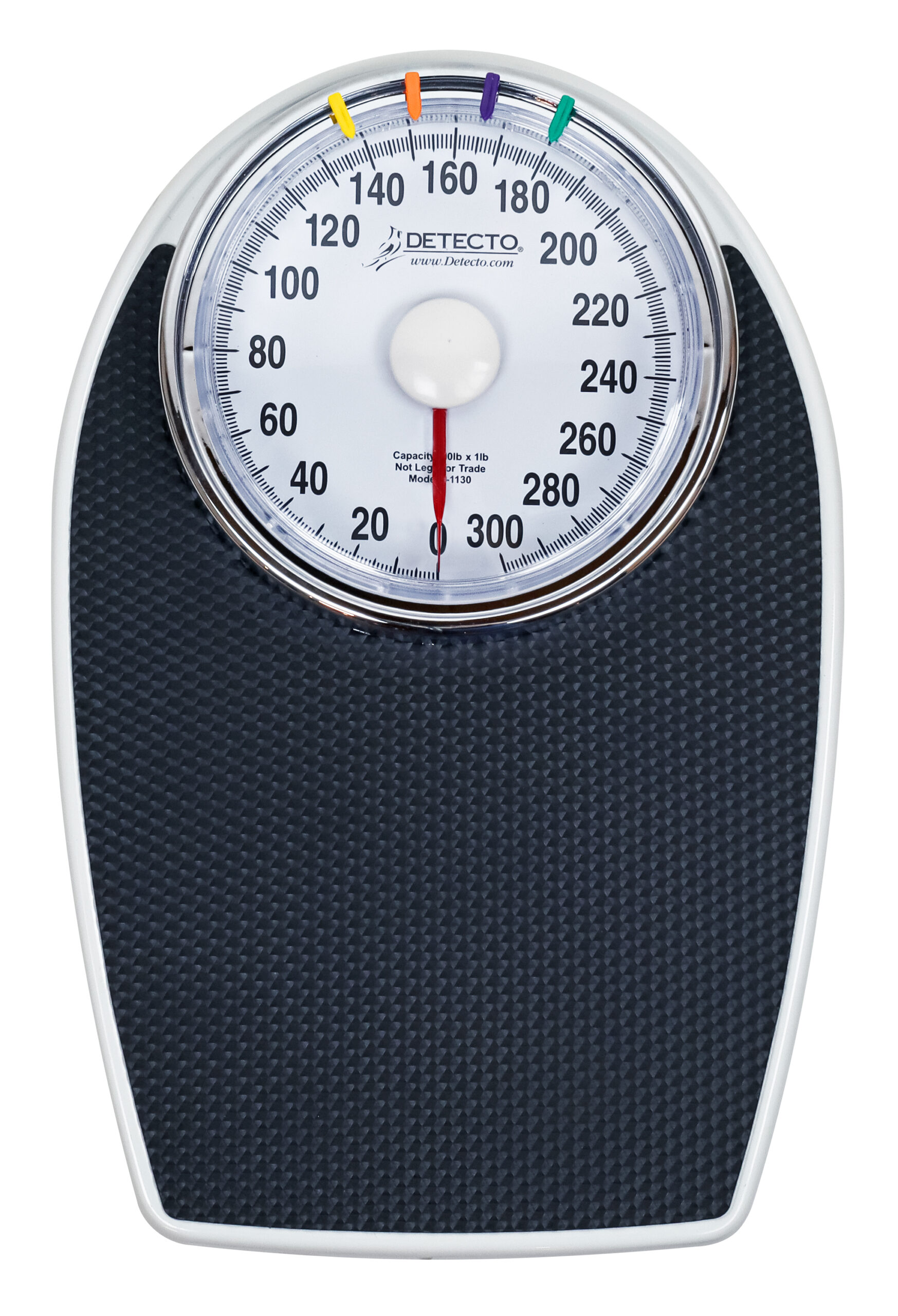 A low-profile design and non-skid vinyl mat are just a few features of the Detecto D1130 scale – proven performer for budget-minded customers. Features a white, baked-enamel finish and four personal colorful indicators to mark one person’s or a whole family’s weights as well as large easy-to-read 7″ dial and a wide, stable platform measuring 11.3″ x 11.8″.