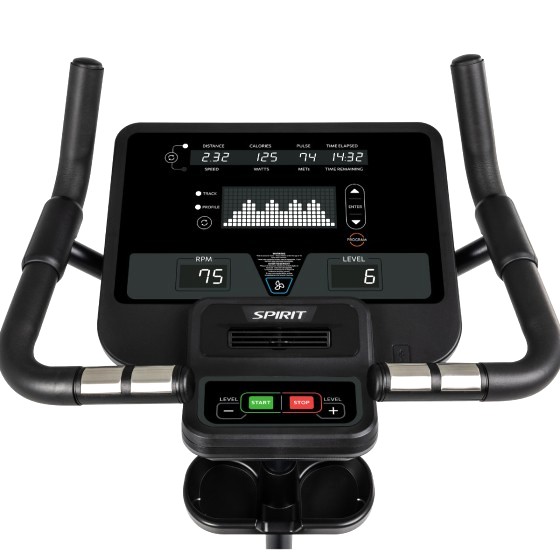 The Spirit® CU900 Upright Bike features a fully adjustable comfort molded seat that can easily and intuitively be raised or lower to accommodate all users. The integrated adjustable fan provides users with a cool workout experience while an accessory tray provides secure placement of keys, smartphones, etc.