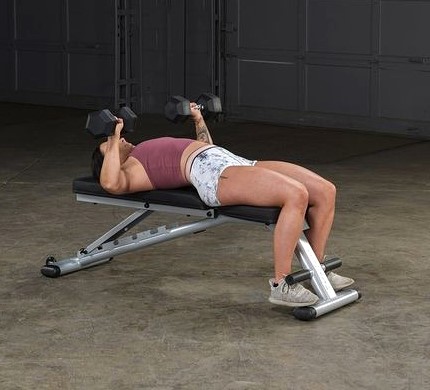 The Body-Solid Commercial Folding Bench features 7 easy and secure ladder-style adjustment positions for flat, decline, and incline workouts.