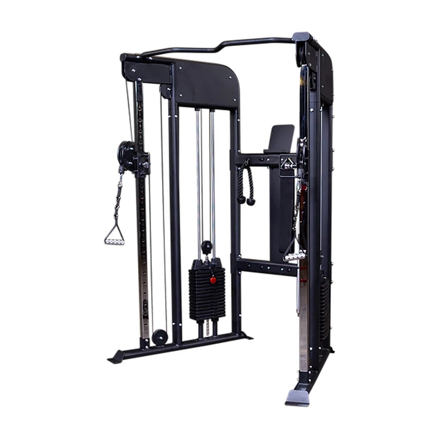 - The dual weight-stack design provides isolateral movements and balanced training. The Body-Solid GFT100 features a 1:2 stack to resistance ratio allowing for smaller incremental weight adjustments and an amazing range of motion. Perform flys, presses, squats, lunges, shrugs, rows, curls, extensions, press downs, crunches and so much more. Add an optional Body-Solid bench or stability ball for even more workout variety.