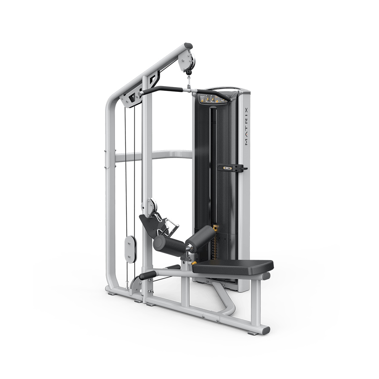 Maximize the functionality of your space with the smart, versatile design of our the Versa Lat Pulldown / Seated Row dual station. The thigh pad easily adjusts to provide stability and comfort when building and toning major back muscles, and clearly indicated adjustment points make it easy for virtually anyone to get started. Elevated footrests provide added stability during heavy lifts, and stainless-steel cables offer lasting durability in hard-use environments.